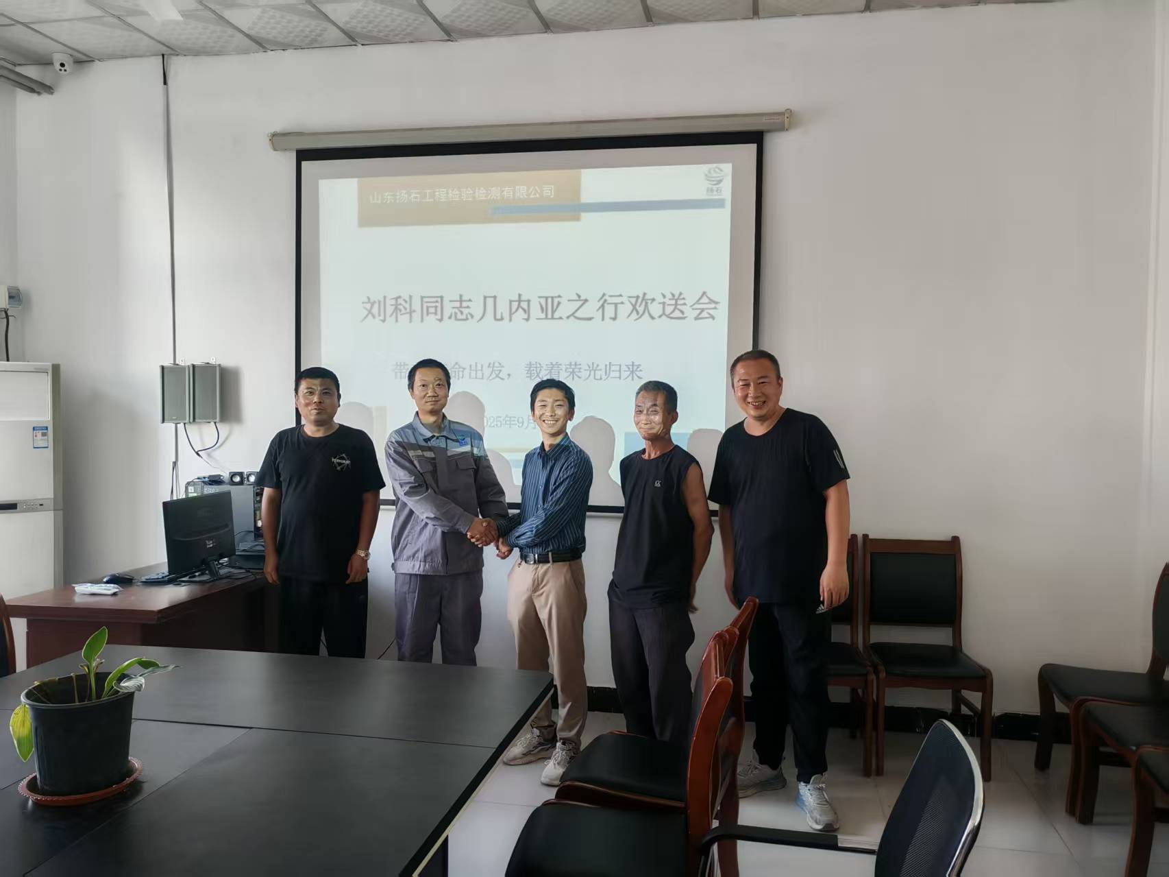 2025年9月25日,山東揚(yáng)石工程檢驗(yàn)檢測(cè)有限公司就劉科前往幾內(nèi)亞共和國檢測(cè)項(xiàng)目工作之行,舉行歡送會(huì),劉科同志...